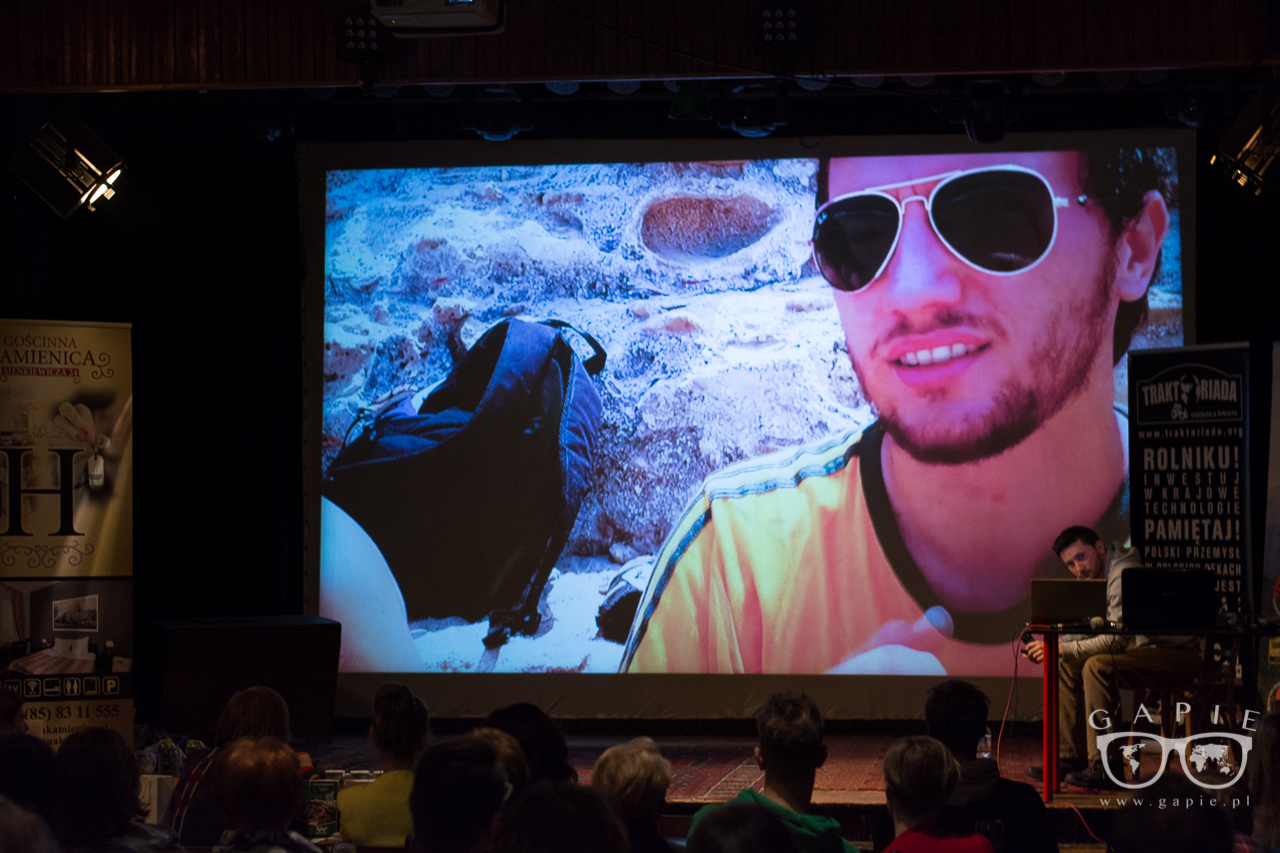 Festiwal otworzyły poranne spotkania ze szkołami. Prelekcje dla dzieciaków poprowadzili Maciek i Marcin. Maciek opowiadał o parkach narodowych USA, a Marcin o swojej wyprawie traktorem przez Amerykę Południową oraz maluchem przez Australię. Oficjalny start festiwalu miał miejsce o 18:00. Na otwarciu Marcin powiedział słów kilka o Klubie Globtroterów ToTuToTam, którego jest założycielem. Następnie mieliśmy okazję wysłuchać trzy prelekcje podróżnicze – dwie gości specjalnych oraz jedną konkursową. Jako pierwszy, Arun przeniósł nas do świata syberyjskich szamanów. Potem wysłuchaliśmy finalisty konkursowego – Szczepana Ligęza, który nietypowo spędził swoje 26 urodziny, odwiedzając 26 krajów. Piątek zamknął Hajer ze swoją prezentacją o Kirgistanie, którą rozbawił do łez wszystkich na sali. Po prezentacjach udaliśmy się na after party do Hary Pubu, gdzie kontynuowaliśmy podróżnicze opowieści przy „herbacie”.
